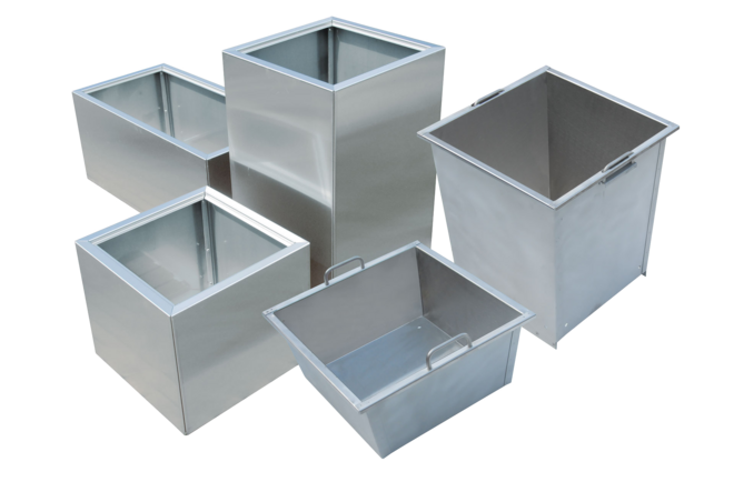 Stainless steel (V2A) 1.5 mm, polished hot-dip galvanized steel 1.5 mm |