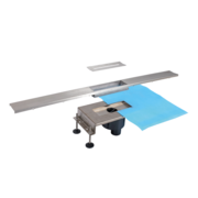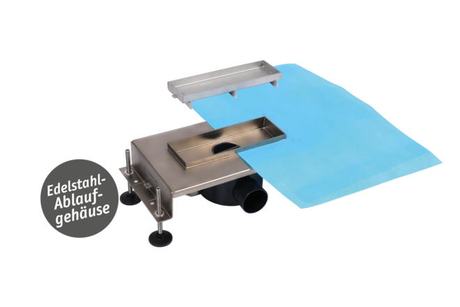 Unser Punkteinlauf „Centralis“ ist ein einteiliges Ablaufgehäuse mit mittiger Fliesenschale für Dusch- und Badbereiche, welches komplett aus Edelstahl gefertigt wird. Ab Werk ist standardmäßig eine Abdichtungsmanschette bis zum Rand der Fliesenschalen-Basis aufgeklebt, darüber hinaus verfügt das Gehäuse über einen Siphon mit Geruchsverschluss. Mithilfe in der Höhe verstellbarer Gelenkfüße gelingen während der Montage die einfache Höhenangleichung sowie der Ausgleich des Untergrunds entsprechend Ihrer projektspezifischen Einbausituation. Zur Verwendung von Fliesenstärken zwischen 8 mm bis 12 mm oder 18 mm bis 22 mm bieten wir Ihnen zwei verschiedene Varianten zur Auswahl. Dank der Möglichkeit, direkt bis an den Rand der Fliesenschalen-Basis verfliesen zu können, realisiert unsere „Centralis“ ein überaus minimalistisch anmutendes und hochwertiges Ergebnis. Die mitgelieferte Fliesenschale lässt sich schnell und einfach in die vorgesehene Basis einsetzen und zur Reinigung ebenso leicht wieder entnehmen.