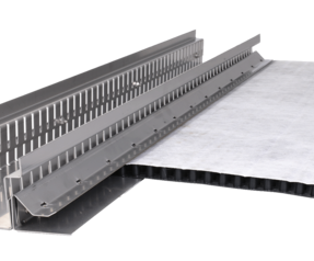 - grating supports turned outwards create an open space for the concave profile of the wall connection