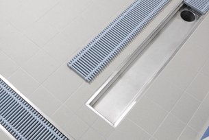 Our height-adjustable Collecta industrial, shower and kitchen channels are the largest dewatering systems we manufacture for indoor use. They can be installed wherever larger volumes of water tend to accumulate – be it due to continuously high use, for example in communal showers in swimming baths, or the sporadic need to remove waste water in commercial kitchens and industrial plants.