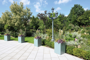 Choosing a plant box with an additional trough to hold summer and balcony plants comes with one clear benefit: even in the taller versions, the entire volume of the plant box doesn’t have to be filled with soil, just the plant trough, which we produce in a standard depth of 200mm. This saves on both material and weight, while making the planting systems easier to fill and move around. Retractable handles support the removal and insertion of the troughs into and out of the outer shell, which is made from either hot-dip galvanised steel with a powder coating, corten steel or stainless steel. Alongside various RAL, DB and NCS colours, we can also add lasered motifs. The dimensions of this plant box can be scaled as necessary – your preference is our standard!