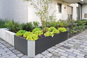 Smooth wooden panel look or corrugated profiled sheets? With our Janus raised bed, you can have both, plus the flexibility to mix and match the look to preference. The planting system features reversible aluminium panels that can be inserted into the corner elements with either side facing outwards. The hollow chamber profiles also guarantee additional heat insulation to protect your plants. The bed can be put together in a number of standard sizes with a choice of three coatings: iron mica (DB 703), white aluminium (RAL 9006) and traffic white (RAL 9016). Additional colours and dimensions are available on request. What’s more, the panel and corner colours can also be mixed and matched. We manufacture the corners with curved and 90° angles.