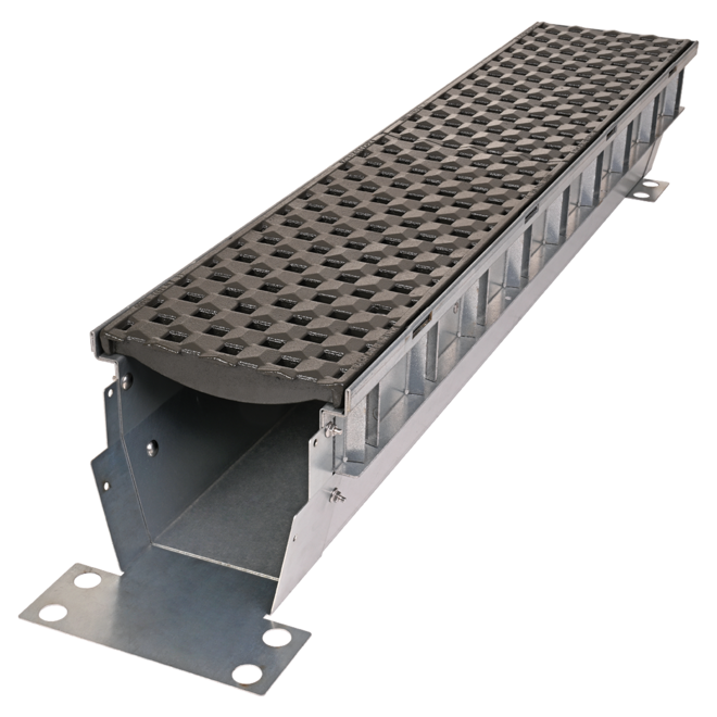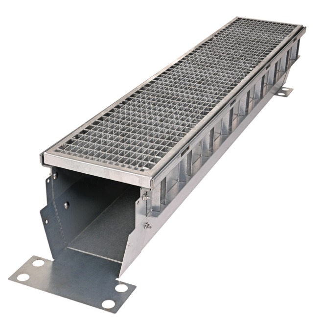 Hofflächen, Zufahrtsrampen und Garageneinfahrten sind täglich hohen Belastungen ausgesetzt, die auch auf die Entwässerungsrinnen einwirken. Für die sichere und dauerhafte Ableitung der vertikalen und horizontalen Kräfte sorgen in unserer Ferro Magna spezielle Trägerprofile, welche mit passenden Schalungswannen kombiniert werden. Dank ihrer robusten Konstruktion nehmen die Profile verkehrsbedingte, statische und dynamische Belastungen sicher auf. Stoßverbinder gewährleisten eine schnelle Montage und Erweiterung des Rinnenstrangs.