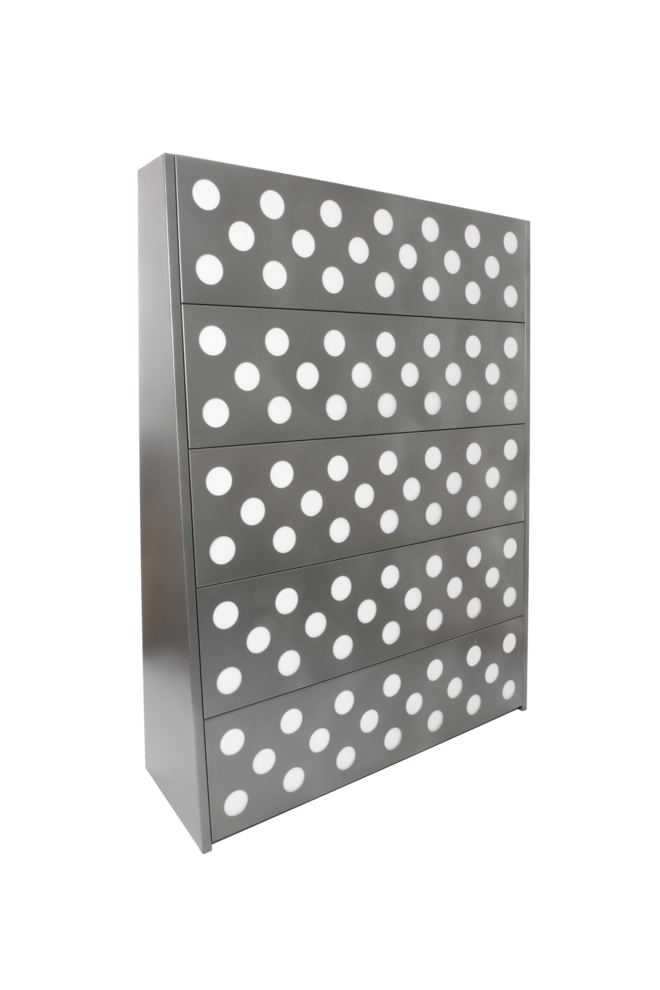 Grâce à son système à emboîtement, la cloison végétalisée « Eva » en acier galvanisé extrêmement résistant à la corrosion se monte en un rien de temps et ses orifices peuvent accueillir jusqu’à 20 plantes par panneau mural. Selon le modèle et le poids de la version commandée, elle peut être autoportée, mais nous proposons aussi des ancrages supplémentaires pour la fixer à un support en béton. Si vous craignez le gel ou la chaleur sur le lieu d’utilisation, nous pouvons également équiper « Eva » de panneaux XPS à percer au niveau des orifices avant d’effectuer les plantations.