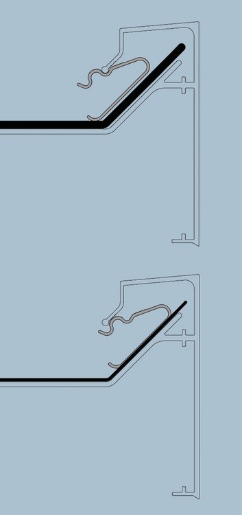 Bei der zweiteiligen Variante „Conar“ werden Basisprofil und Zierleiste in einem Bauteil gefertigt, welches ebenfalls am Dachrand fixiert wird. Die eingebrachte Folien- oder Bitumenbahn wird in diesem Fall mithilfe eines zusätzlichen Klemmprofils aus Aluminium zuverlässig im Aufbau gehalten.
