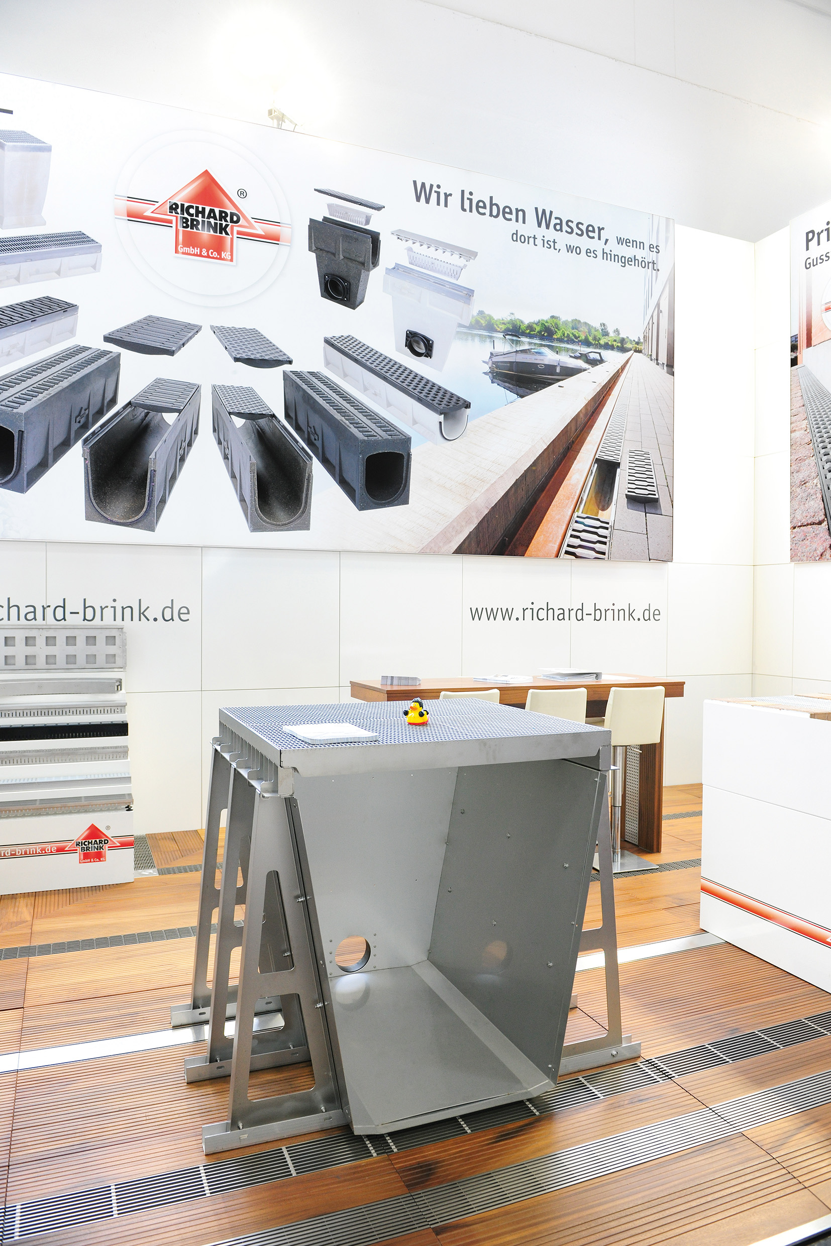 De randen, die tevens als roostersteunen dienen, worden van 4 mm dik materiaal gemaakt. 2 mm dikke staanders vergemakkelijken bij de montage de uitlijning van de goten en vormen tegelijk betonankers voor een vaste verbinding met de ondergrond. Voor extra stabiliteit zorgen verbindingsstangen tussen de randen.