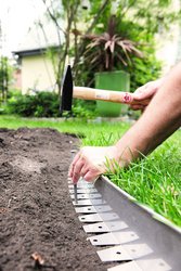 Der Einbau einer Rasenkante aus Metall erfordert wenige Schritte. Zunächst sollte die gewünschte Linie für die Rasenkante markiert werden. Anschließend wird ein entsprechender kleiner Graben ausgehoben, in den die Rasenkante eingelassen werden kann. Die Beeteinfassung wird dann sorgfältig ausgerichtet und mit Erdnägeln befestigt. Abschließend wird der Graben wieder mit Erde verfüllt und die Rasenkante kann eingeebnet werden. Im Gegensatz zu Beeteinfassungen, die nur in den Boden gestochen werden, sorgt die Rasenkante "Ora" von Richard Brink mit den Auflageflächen dafür, dass die Rasenkante nicht absacken kann. So haben Sie langfristig Freude an einer ordentlichen Metallkante, die auch Belastungen durch Gerätschaften oder Menschen standhält. Die ausführliche Anleitung finden Sie in unserem Video "Flexible Beeteinfassungen - Einbauanleitung".
