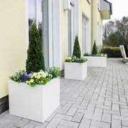 Sichere Aufstellung: Dank der Begrünung innerhalb des Pflanzkastens ist eine grundlegende Beschwerung zur sicheren Aufstellung gewährleistet. Um auch windexponierten Lagen im Außenbereich standzuhalten, verfügen die Pflanzkästen im Bodenbereich über Löcher zur Verschraubung im Untergrund.