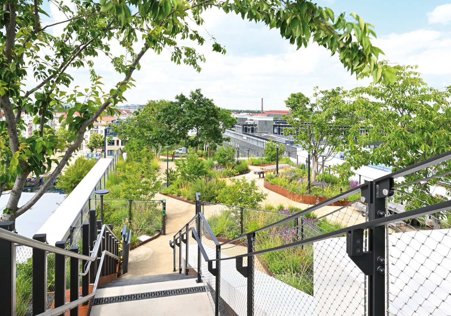 Wie ein Schwamm sollen Städte künftig in der Lage sein, sich bei Starkregenereignissen, die sich schon jetzt klimawandelbedingt häufen, mit Wasser vollzusaugen und den zwischengespeicherten Niederschlag kontrolliert wieder abzugeben. Dazu und zu weiteren Aspekten leisten Grünflächen im Stadtbild einen wichtigen Beitrag: Um Hitzewellen zu reduzieren und CO₂ sowie weitere Schadstoffe aus der Luft zu filtern und gleichzeitig den Wohnungsbau voranzutreiben, scheint es unumgänglich, Grünflächen in die Bausubstanz der Gebäude der Zukunft zu integrieren. Das klassische Beispiel dafür sind Gründächer, doch auch entlang von vertikalen Flächen bieten sich inzwischen vielseitige Möglichkeiten zur Gebäudebegrünung.